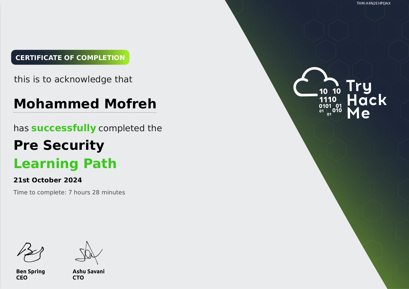 Introduced me to understand many security tools and basic pentesting methods as well as general concepts in cybersecuritty.